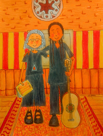 Margarit, Brossa, Maria Mercè Marçal, Anna Gual, Jacint Verdaguer, Joana Raspall... i així fins a gairebé una vintena de poetes ressonaren al Saló de Cent llegits per la Neus amb una rapsòdia lluny del to afectat o impostat que gasten altres recitadors... acompanyant-se, a voltes, d'uns arpegis a la guitarra que es fonien amb la veu de la Carme tot seguit. Un munt de poetes, de diverses èpoques i estils, alguns coneguts, d'altres no tant -com el vers del meu bon amic Jordi Trepat que la Carme trià per posar veu al seu final professional: